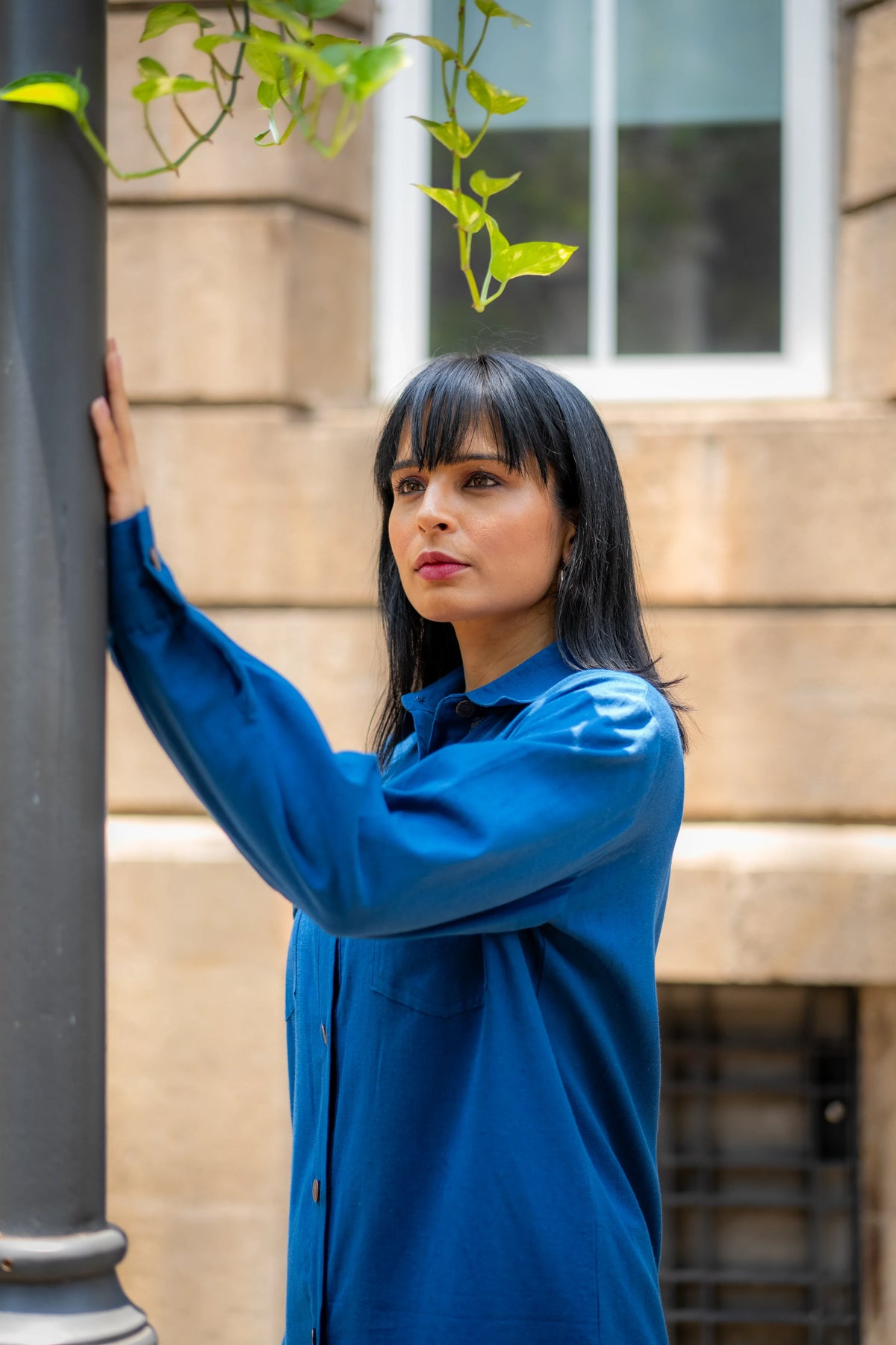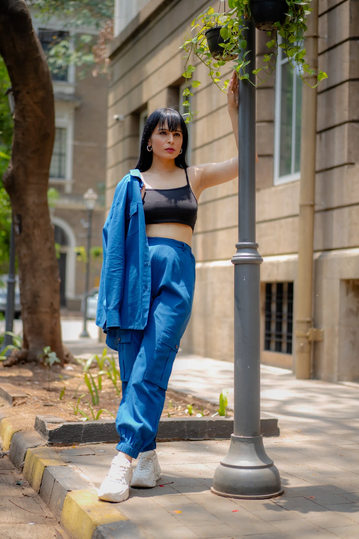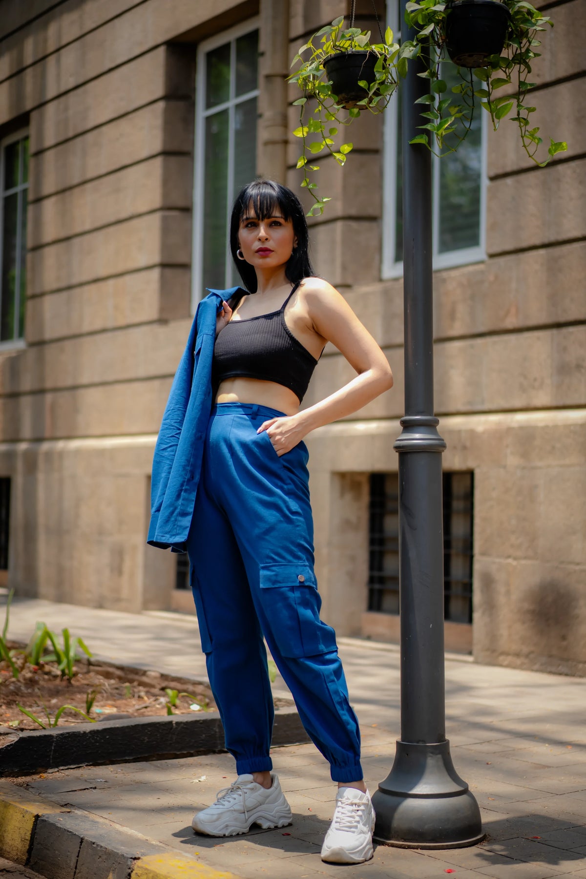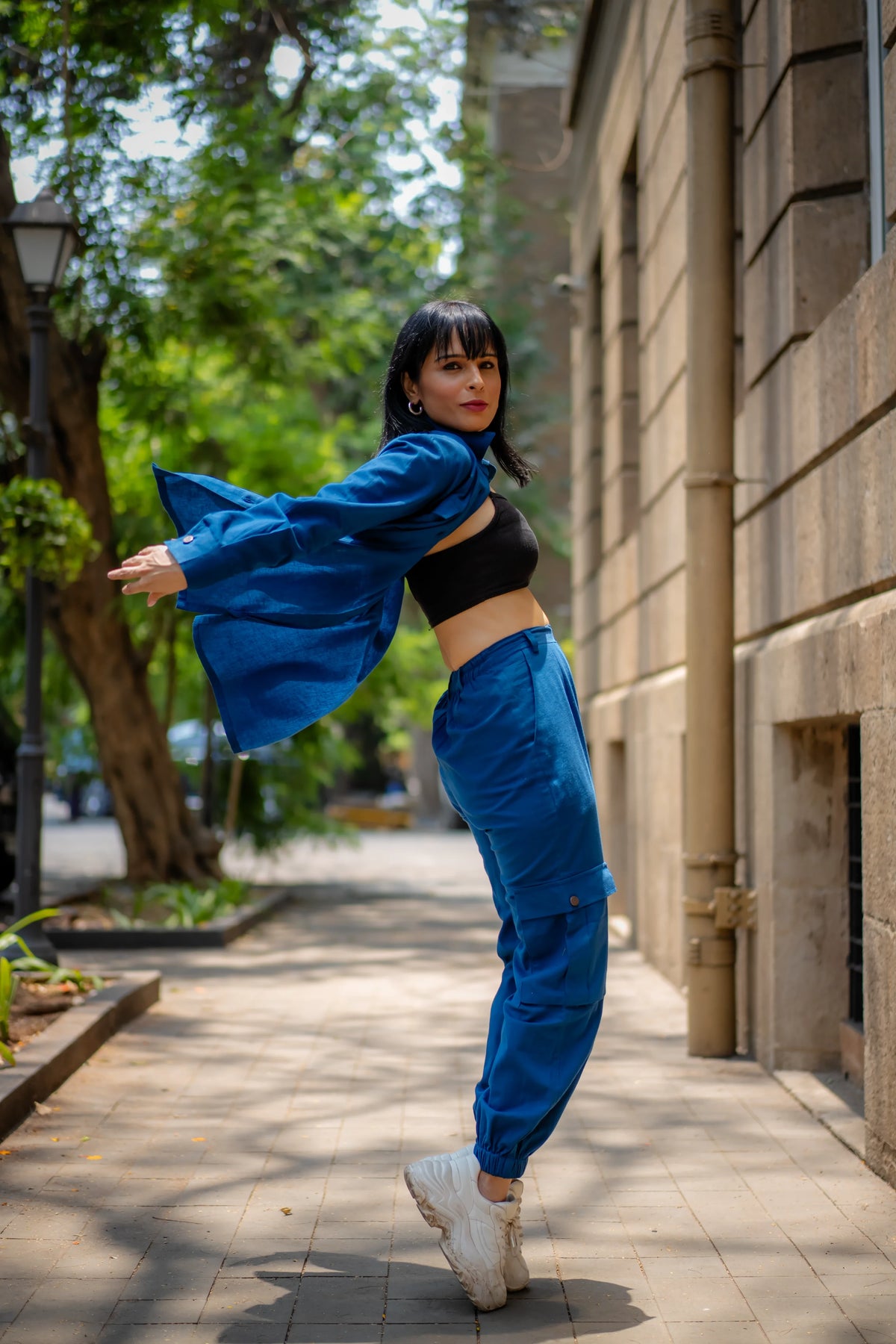 Meet our versatile Denim Blue Cotton Set, designed for all-day comfort and style. The set includes an asymmetric shirt and joggers, both crafted from soft cotton flex fabric. The shirt stands out with its intriguing asymmetric placket, which forms a unique pleated panel on the left side, adding a contemporary touch to the classic design."